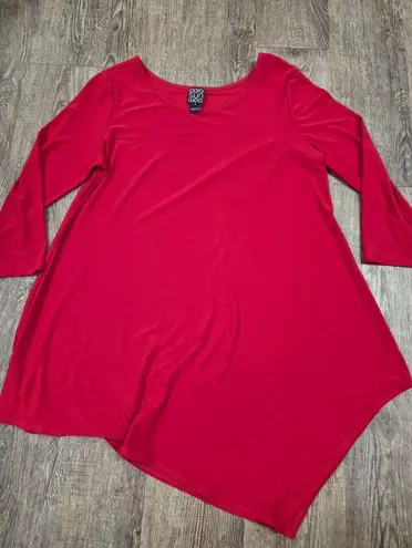 Clara Sun Woo Solid Red Asymmetrical Tunic Blouse Stretchy Made in USA Large - $25 - From Mary