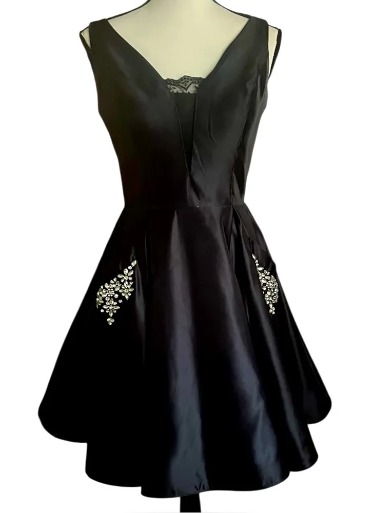 . Zipper back and criss cross tie up back. Has double lining with layer of crinoline in between. So pretty. Padded cups. Has a defined waist. Length 36”. Pit to pit approx. 18” flat lay. Waist approx. 13” flat lay. Great condition.