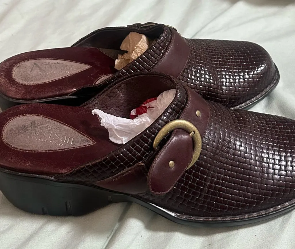 Clarks Artisan Women’s Burgundy Woven Leather Mule Clogs Shoes Sz 10 - $25 - From Dana