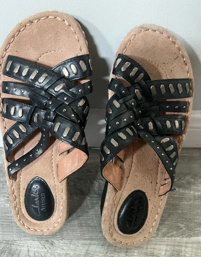 RARE 🔥🔥CLARKS ARTISAN WOMEN'S SANDALS STYLE #80037 Size 6.5 COLOR BLACK/BROWN USED CONDITIONS-LIKE... Show more
