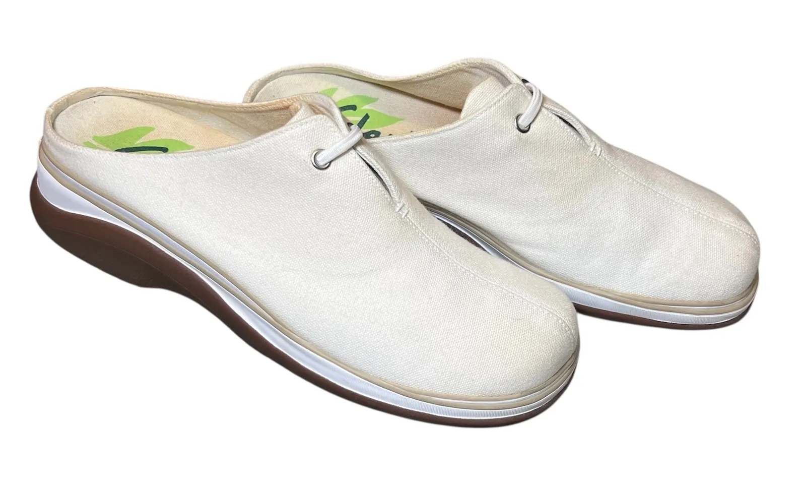 Brand: Clarks Description: Womens Off White Canvas Mule Clog Shoes Size: Womens Size 9 Flaws: There... Show more