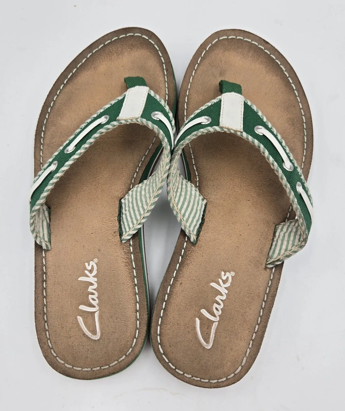 Clarks Flo Cherrymore Slip On Thong Flip Flops in Green and White are a stylish and comfortable opti... Show more