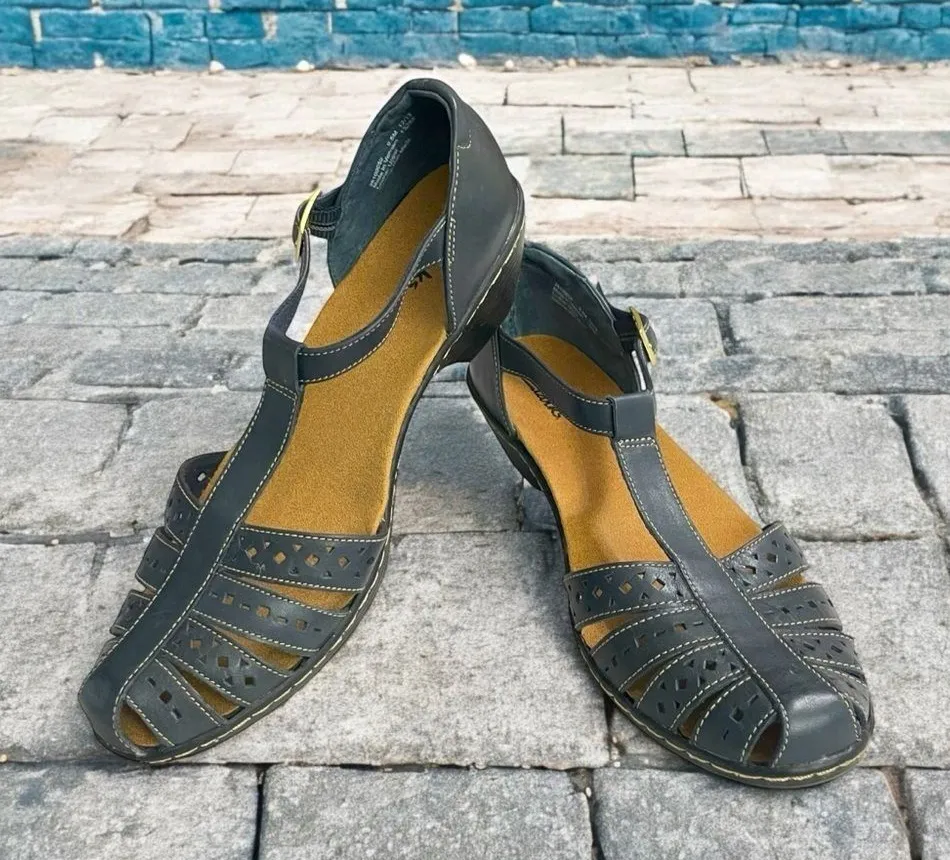 CLARKS WENDY LAUREL Midnight Blue Leather Wedge Heels Cushion Soft Sandal size 9.5 TAGS, adjustable... Show more