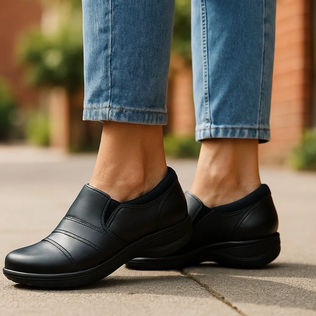 Elevate your everyday style with the CLARKS Women's Angie Pearl Leather Slip-On Loafers. These black... Show more