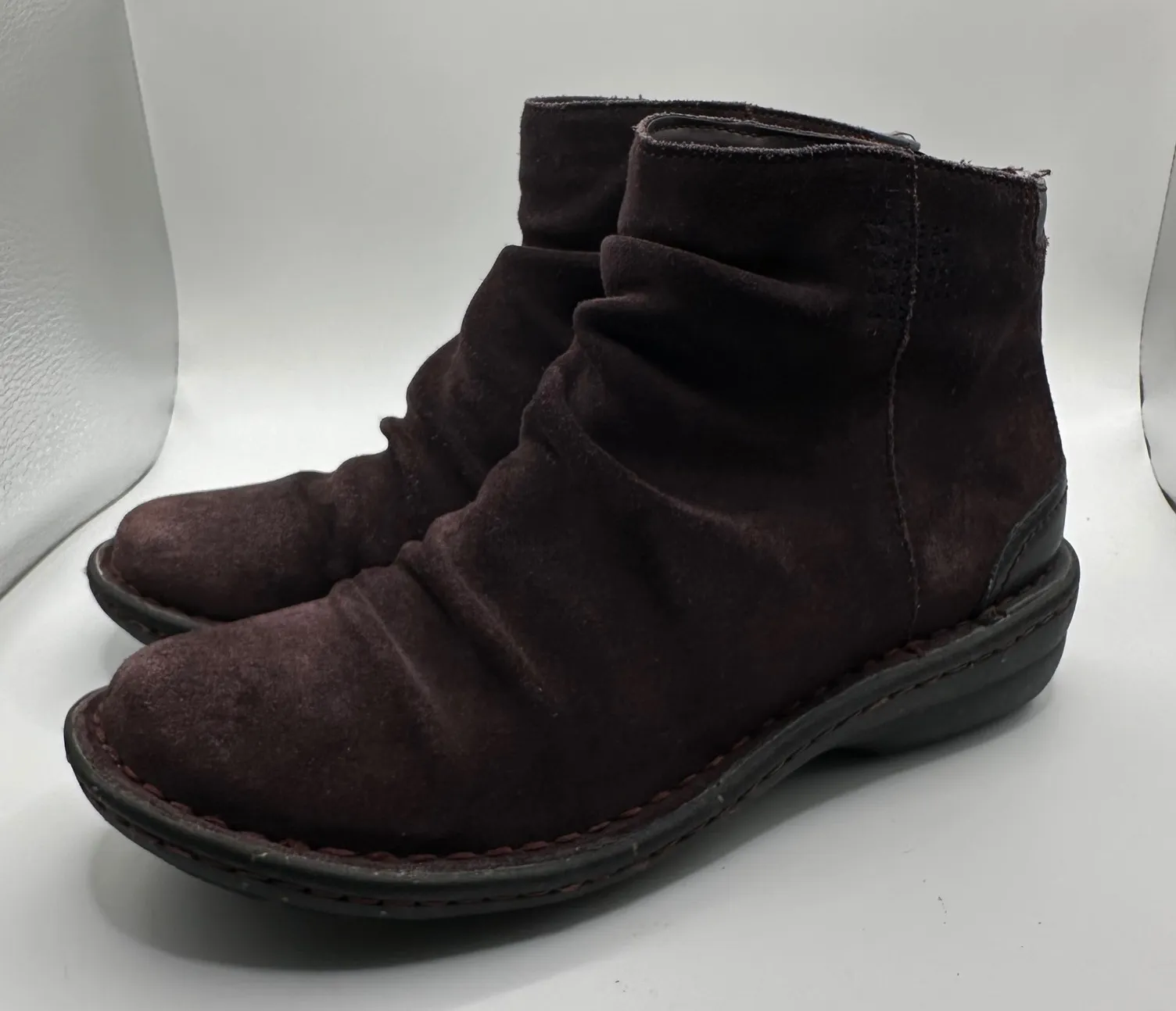 There is some toe wear in the suede. Step into effortless style and comfort with these Clarks burgun... Show more