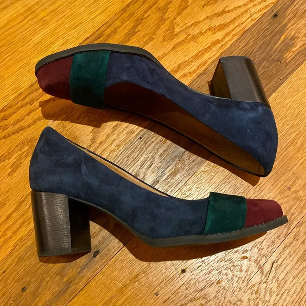 Clarks Tarah Brae Colorblock Suede Navy Plum Green Block Heels Size 6.5 Good pre loved conditi... Show more