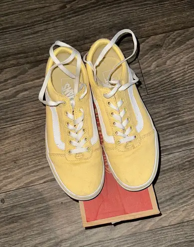 Vibrant yellow Vans with white accents. Ideal for everyday style. (worn a handful of times, still in... Show more