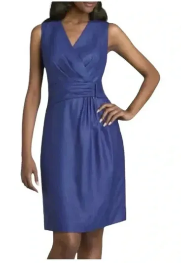 All orders ship next business day! Classiques Entier Royal Blue Sleeveless Dress, ruched waist, V-neck, fully lined, invisible side zipper, women's size 6. Condition: clean, excellent condition Color: blue Size: 6, length- 39", pit to pit- 18" (approximate) Material: polyester women, women's, work, office, business, cocktail, event, wedding, sleeveless, ruching, classy, classic, feminine, pretty Smoke free and pet free home!