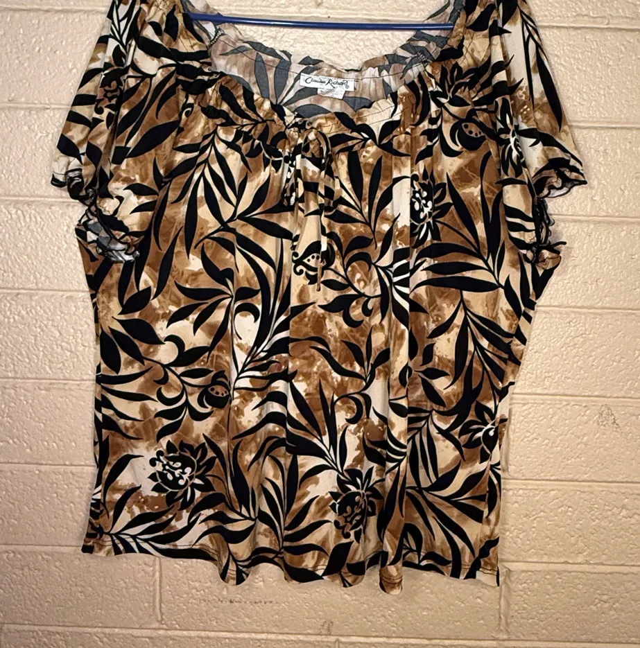 Claudia Richard Tan and Black Patterned Dress Brown Size 2X - $9 - From Damaris