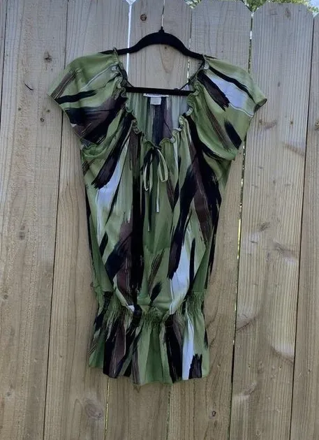 Claudia‎ Richard Womens Green Brown Design Shirt Top Blouse Large Watercolor - $12 - From Caitlin