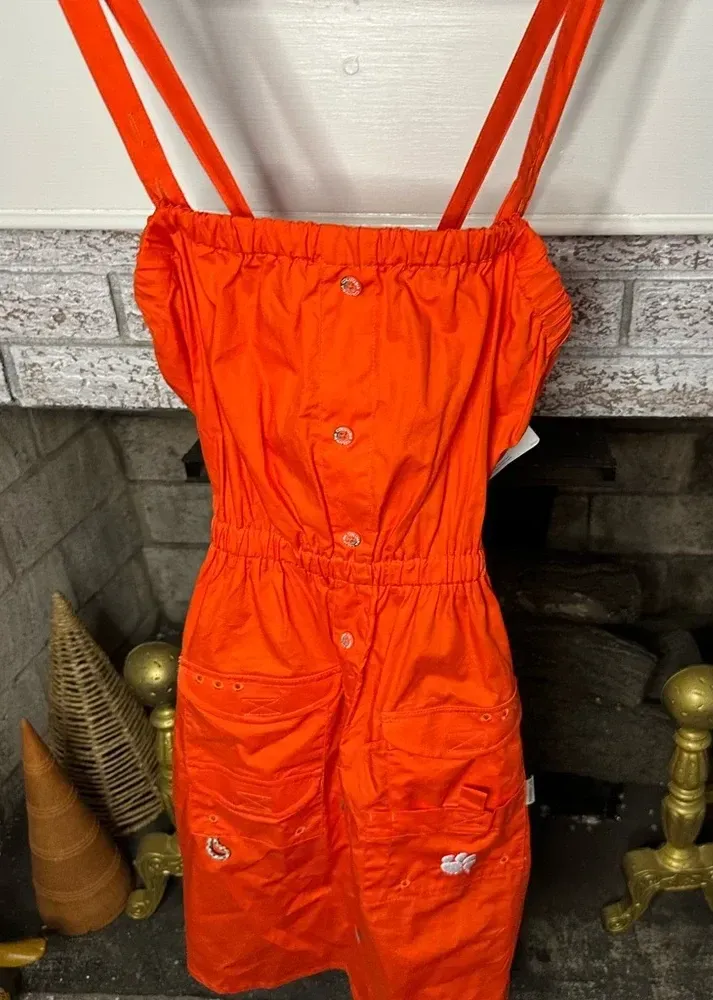Clemson University Tigers Columbia NWT smocked back apron stylee dress with pockets and adjustable... Show more