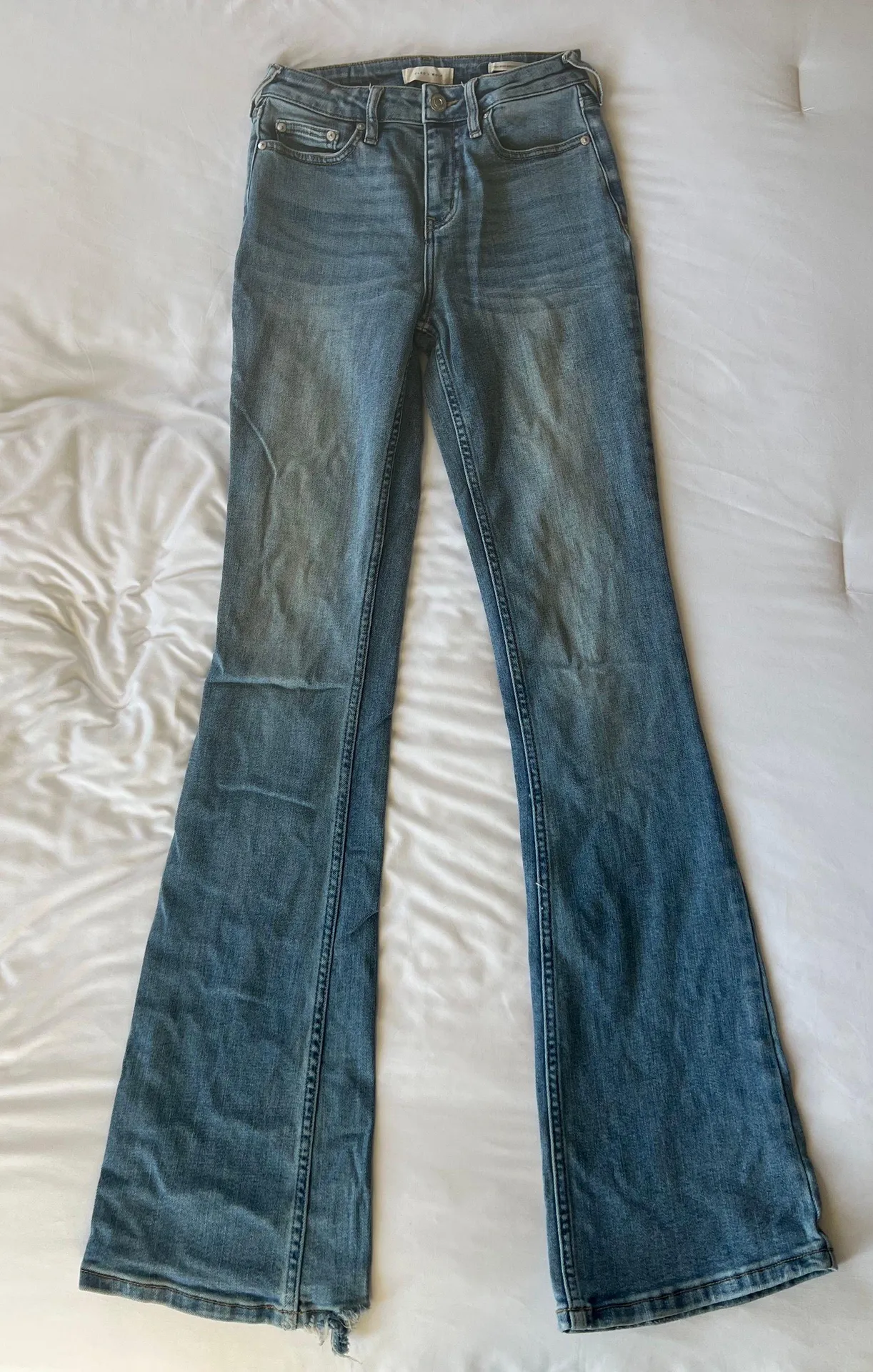 Nice women’s high rise bootcut jeans Size: 26 waist 36 length Brand: Cleo + Wolf In great condition besides some wear on the bottom (in the picture) Feel free to ask any questions Smoke free home
