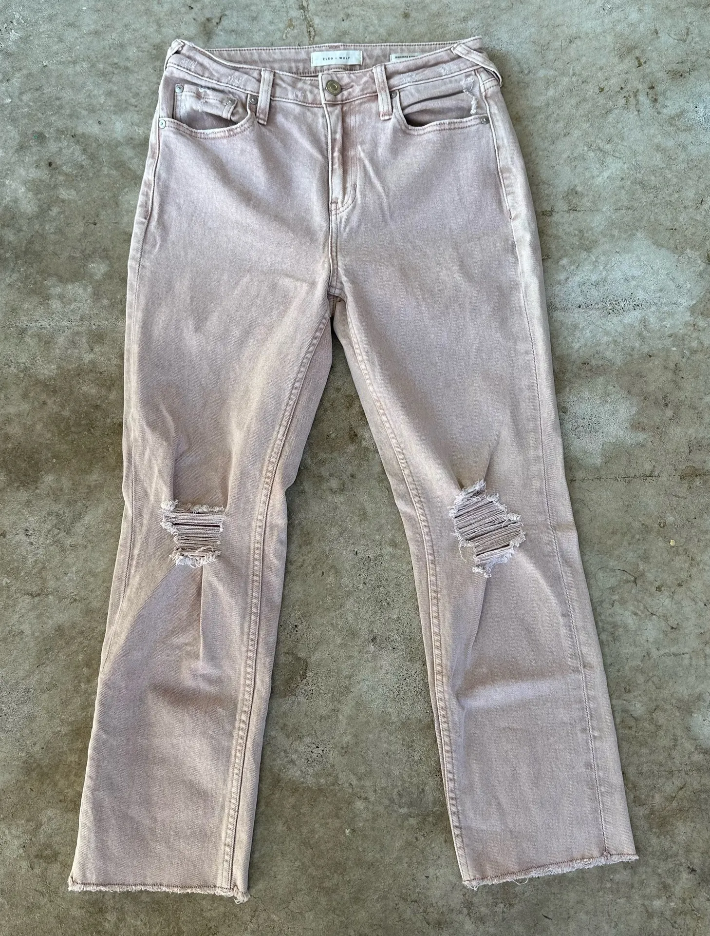 Cleo+ Wolf Distressed Light Pink High Rise Straight Jeans W27 L27 Women's Size 27 - $5 - From G