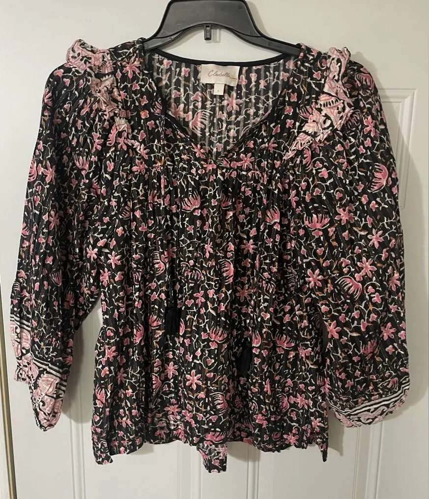Size: Large Color: black, pink Material: organic cotton, metallic Measurements: •pit to pit 20 in •shoulder to hem 23.5 in Excellent preloved condition!! No flaws, rips, tears, stains, etc. From a smoke free, dog friendly home! Bundle and save!! Offers welcome :)