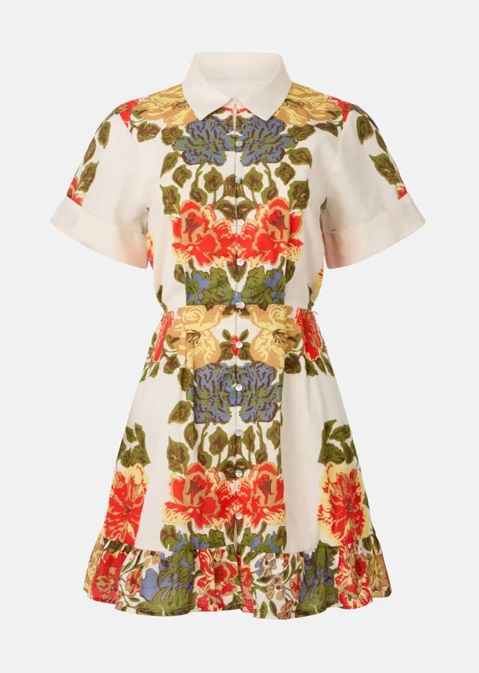 Embrace elegance with this floral print short sleeve dress. Perfect for any occasion, this dress features a vibrant design that stands out. Beautiful blossoms make a striking impression on this cotton-and-linen shirtdress featuring handy pockets and a chic cinched waist. • 35" length • Front button-and-loop closure • Point collar • Short sleeves • Side-seam pockets • Lined • 70% cotton, 30% linen • Dry clean • Imported BRAND NEW NO ORIGINAL TAG FREE SHIPPING