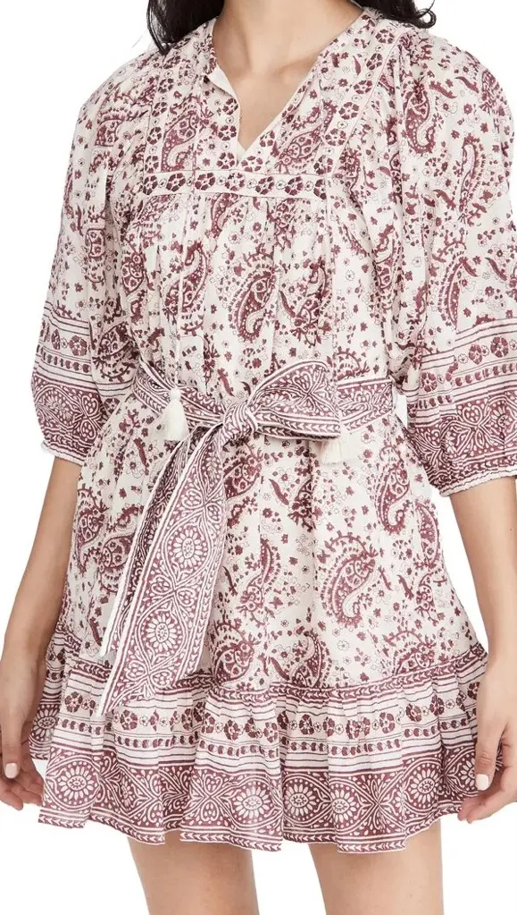 Cleobella Magdalena Mini Dress Paisley Block Print White Red Puff Sleeve NO BELT Size L - $78 - From Sassia