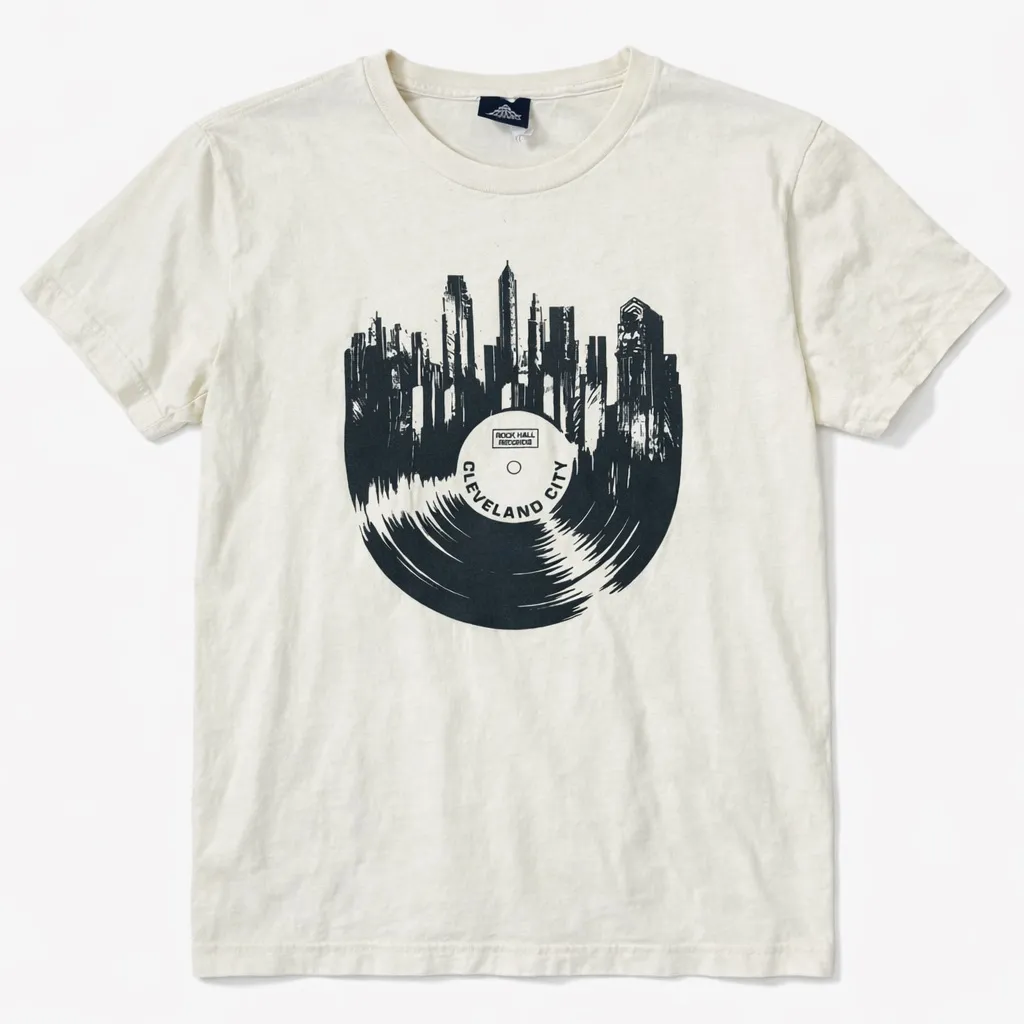 Cleveland City Rock Hall Records Rock and Roll Hall of Fame graphic t-shirt Size medium Excellent condition- no stains, holes, tears, etc. Black vinyl record skyline design with Cleveland cityscape Classic crewneck short sleeve silhouette Soft breathable 100% cotton Unisex fit Great for music lovers, vinyl collectors, and Cleveland fans Perfect casual everyday or streetwear style Measurements (approx.) Underarms across the front: 20” Length from shoulder to hem: 24.5” Sleeve length: 7.5” BIN 3