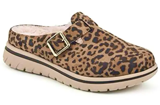 Cliffs by White Mountain Homey Leopard Print Buckle Detail Faux Fur Lined Mules Brown Size 7 - $25 - From Katelyn