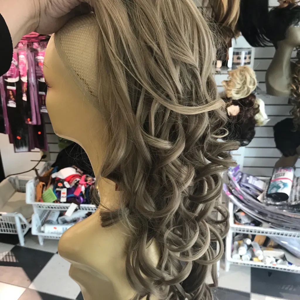 Ash blonde jaw clip ponytail Long loose curls most wanted color in 2018 use hot tools up too 390 flat iron curl like your Own hair I have this in all colors and styles They are on jaw clips or have combs inside you pull your own hair into a little bun and it sticks on depending on style you choose Welcome all you have to do is tell me and I can upload it or tag me in a photo of you and I can match your color and style choice I can upload your exact choice no returns on hair
