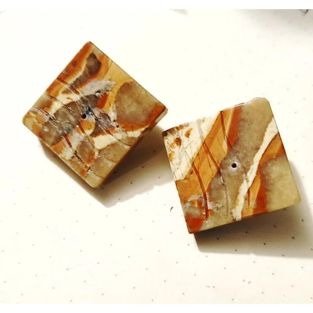 These vintage clip-on earrings feature earthy marbled stone squares with a smooth finish, paired wit... Show more