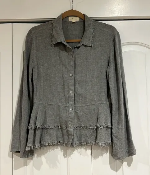 Cloth & Stone raw hem button up rayon top. Measurement across back 18 shoulder to hem 23 100% rayo... Show more