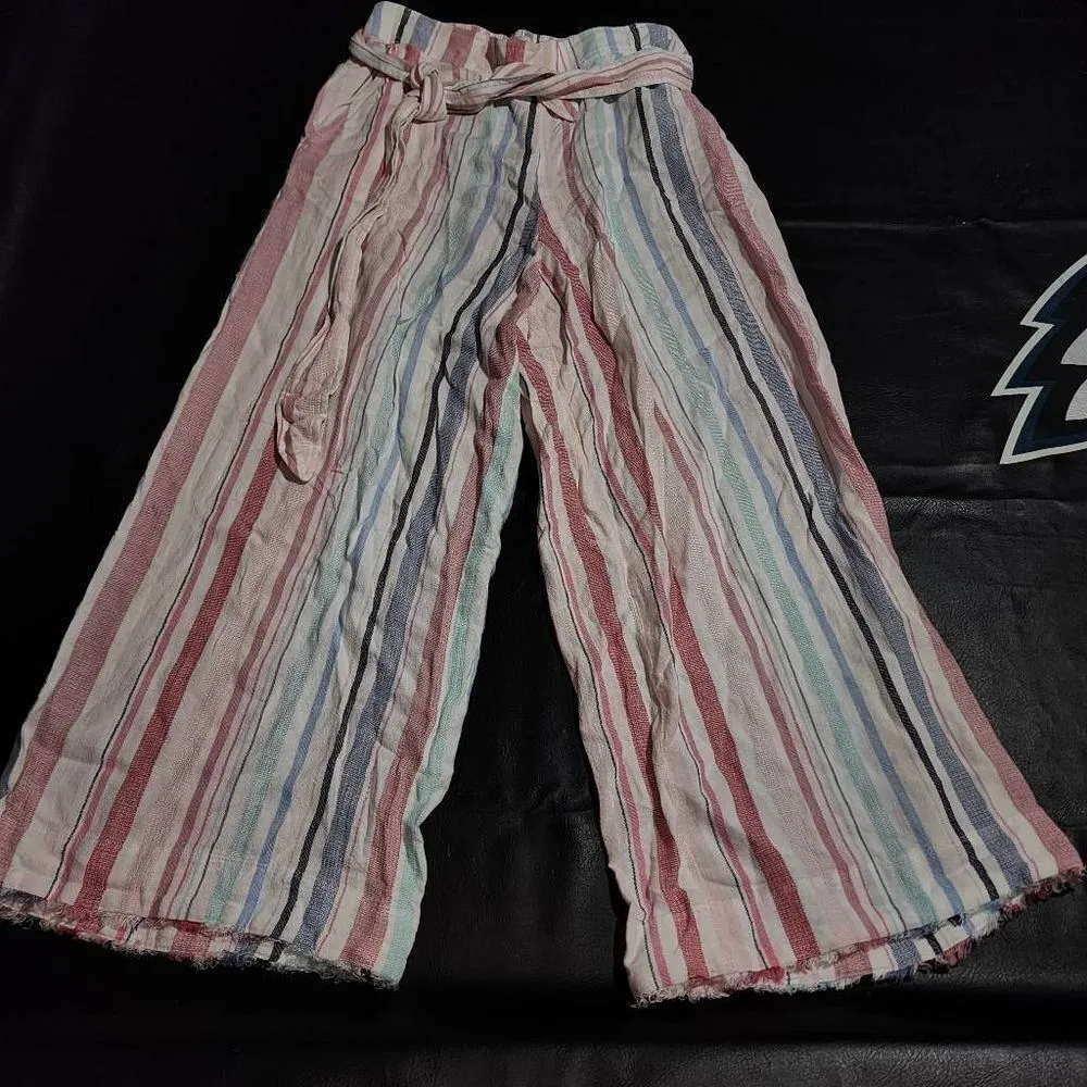 Cloth & Stone Womens Linen Blend Striped Wide Leg Crop Pants w/ Belt XS Waist: 28" Inseam: 24" Rise:... Show more
