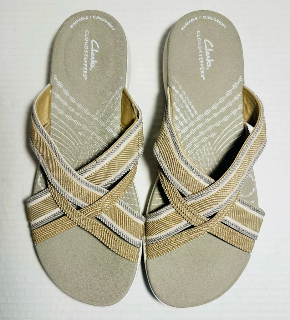 READ FULL DESCRIPTION: New No tags or box Sandals have some scuffs and marks from being without box. There is a snag on the upper strap ( see pics). Nice comfortable shoe. Size is: 9 - see pics for condition - see pics for measurements - in a smoke free home - in a home with pets - good used condition - color disclosure: color may differ in pics than actual color due to flash, lighting, shadows etc. ***if you purchase this item and are satisfied, please remember to leave a review and I will do the same for you. If you have any issues please contact me so I can correct it for you. Thank you!