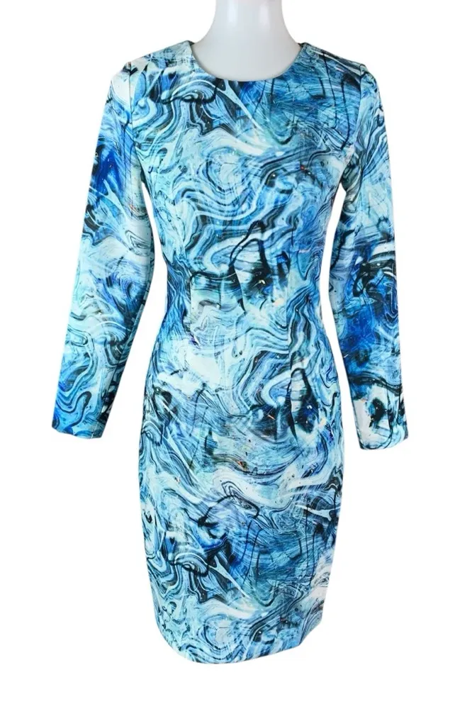 Clove Blue Marble Bodycon Dress Long Sleeve Abstract Print Petite 2P - $28 - From Rodica