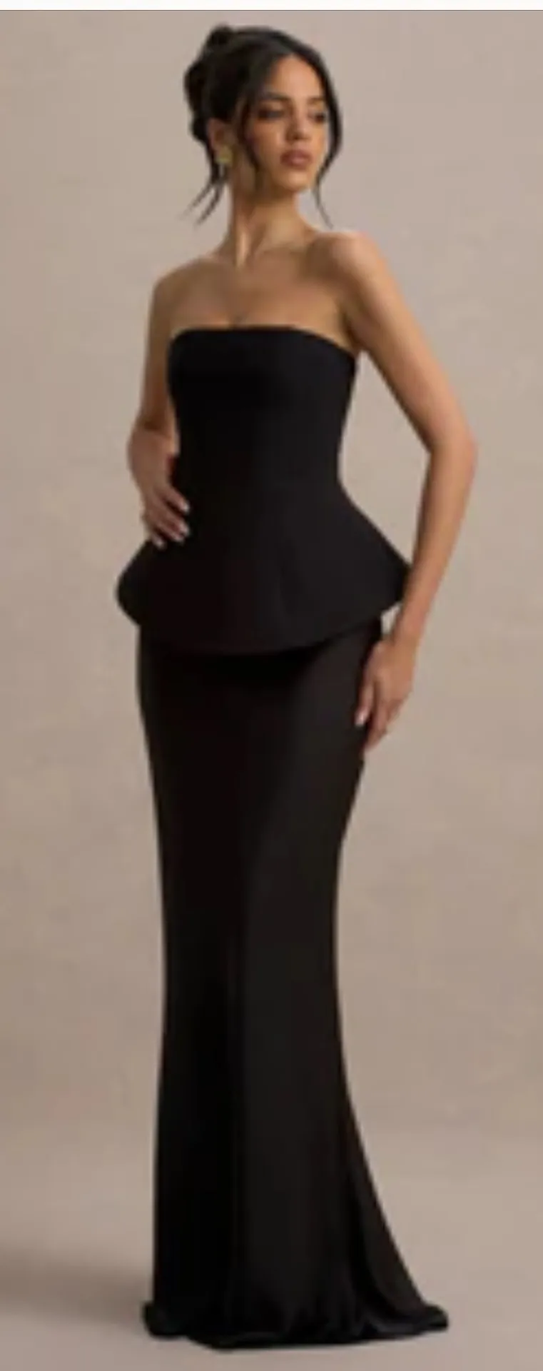 Look red carpet ready, exuding glamour and elegance in our Ohio maxi. Designed in a combination of our premium stretch crepe and satin, in a rich black hue, ensuring you are snatched while the skirt moves with you seamlessly. The sleek bandeau neckline, adds to the overall effortless elegance that this dress promotes. Pair with a statement earing and a chic up do, and be ready to turn heads.