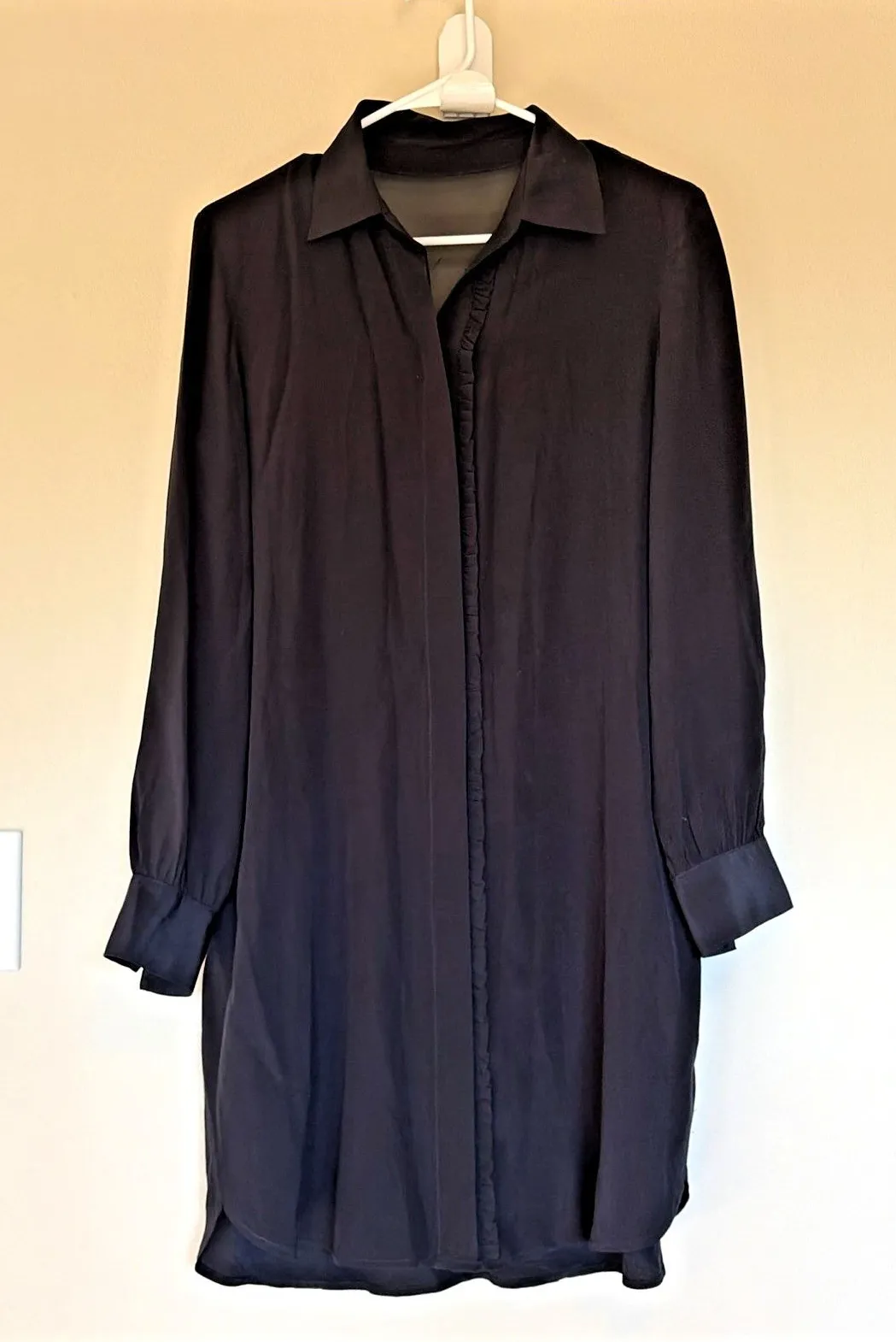 Club Monaco Classic Black Mulberry Silk Shirt Dress Womens Medium MISSING BELT - $47 - From Hilary