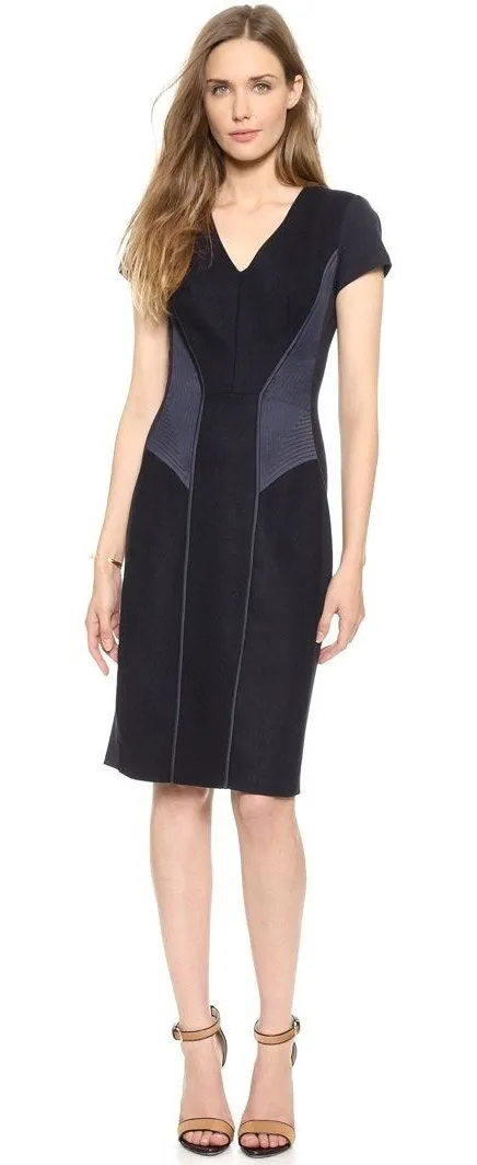 Club Monaco Kiona Wool Blend Pencil Navy Blue V-Neck Dress Size 4 Navy Blue V-Neckline Short Sleev... Show more