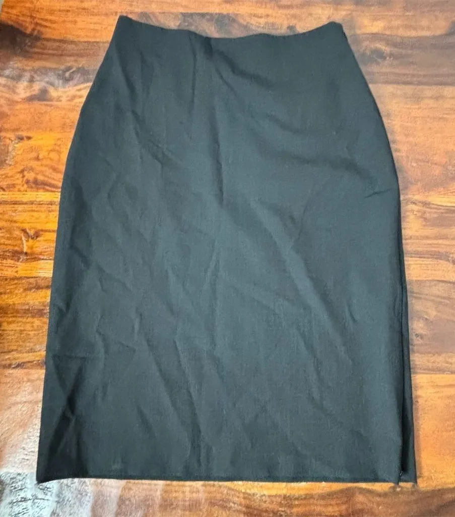 This Club Monaco skirt is a women's knee-length, straight and pencil style, available in size 0. It is crafted from a blend of polyester, wool, and spandex, offering both comfort and durability. The solid black color makes it suitable for workwear and other professional settings. Made in Canada, this skirt is pre-owned. Keywords: Club Monaco, skirt, women's fashion, knee-length, black skirt, workwear, polyester, wool, spandex, pencil skirt, pre-owned, Canada, solid pattern, size 0, professional attire. Brand: Club Monaco Type: Skirt Size: 0 Style: Straight & Pencil Skirt length: Knee Length Color: Black Department: Women Material: Polyester, Wool, Spandex Pattern: Solid Features: Comfort, Durability Occasion: Workwear Country of origin: Canada Smoke free, pet friendly home. May be mailed in recycled materials. See photos for best description. Most items are being sold on consignment.