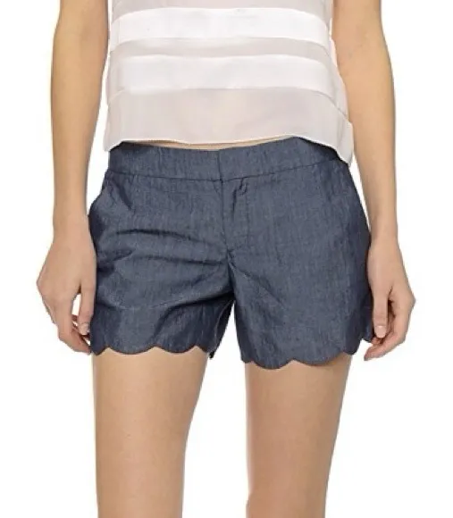 Description Effortlessly chic Club Monaco women's shorts in a size 4, featuring a playful scalloped... Show more