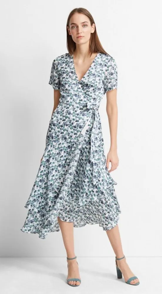 Club Monaco Zaydie Asymmetrical Wrap Dress Size 2 Blue green white pattern Wrap style Asymmetrical... Show more