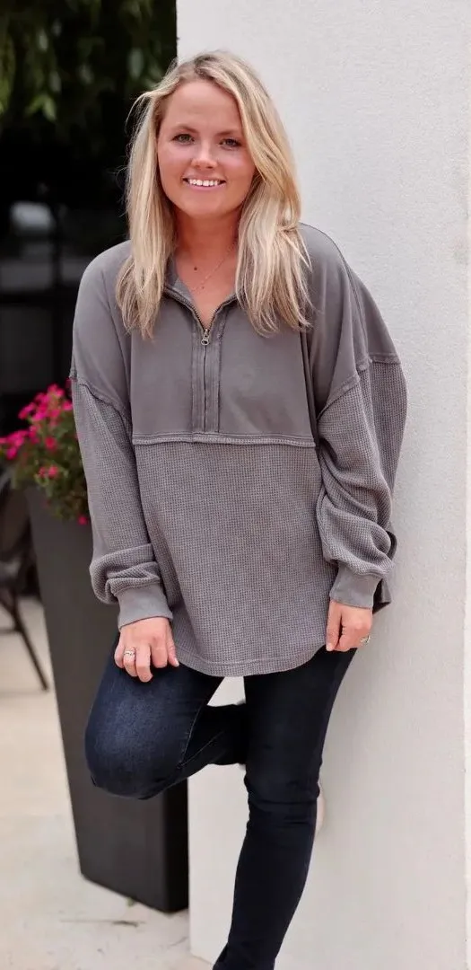 Club Social/Jadelynn Brooke Waffle Knit Half Zip Oversized Lagenlook M #758 Gray Size M - $22 - From Melissa