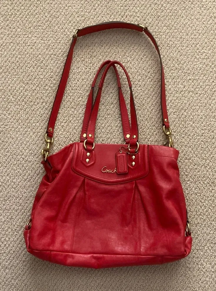 Coach Cherry Red Two Way Bag Hobo Satchel Large L1280-F19243 Purse Like NEW condition Coach Ashley... Show more