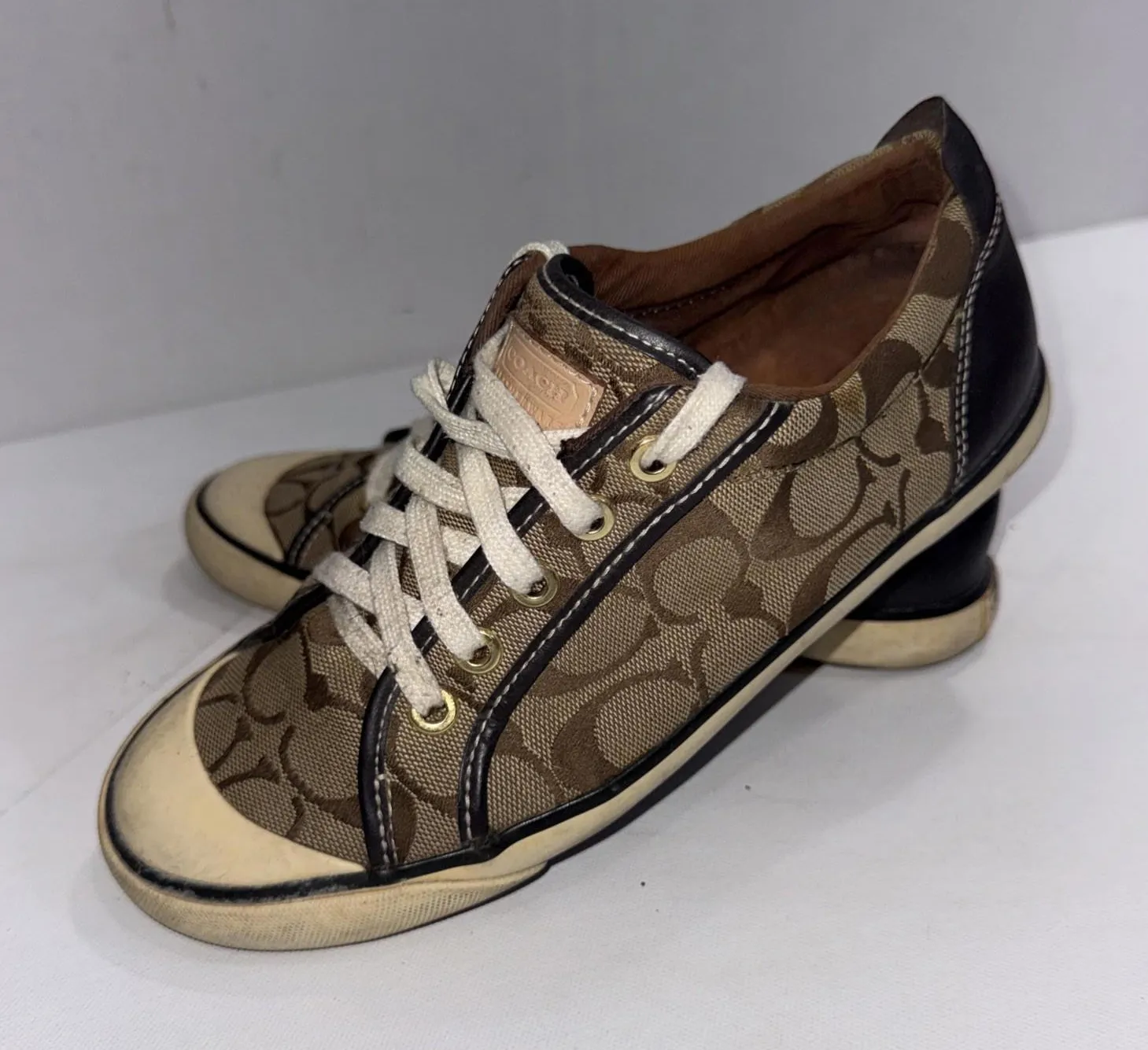 Coach Barrett Brown Vintage Style Monogram Designer Tennis Shoes in USA Women’s Size 7.5B, in FAIR p... Show more