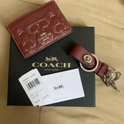 LEATHER CARD CASE WALLET VALET KEY FOB KEY-CHAIN NIB $125