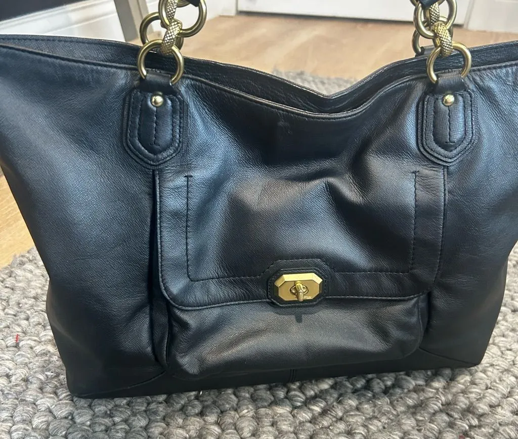 Coach Campbell Black Leather Satchel Bag Serial No G1320- F24845 Large in Size. Soft Genuine Black... Show more