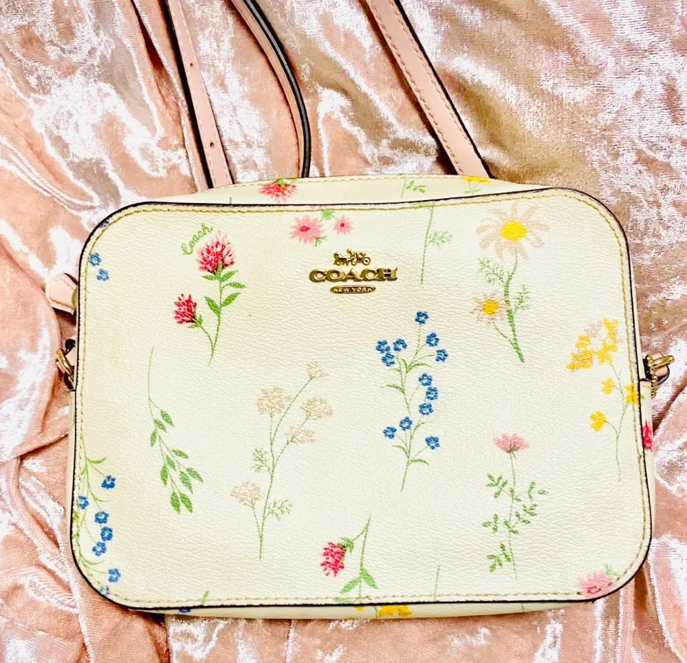 The Coach Canvas Crossbody Bag in White with a Floral Print is a stylish and trendy accessory for wo... Show more