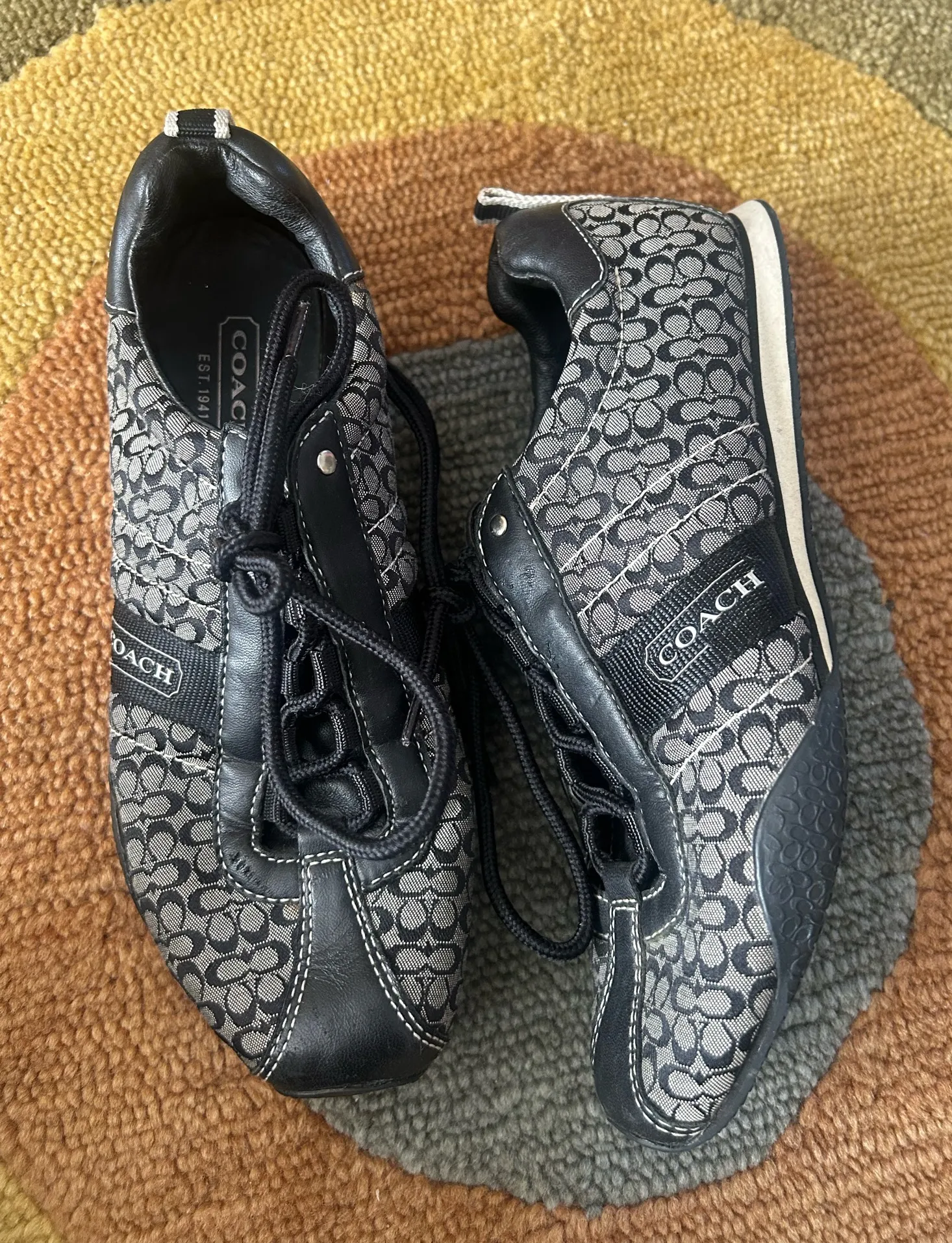 Coach Kelsie Sneakers Shoes Grey Black Signature Canvas Leather Women’s Size 7 1/2 Great Conditio... Show more