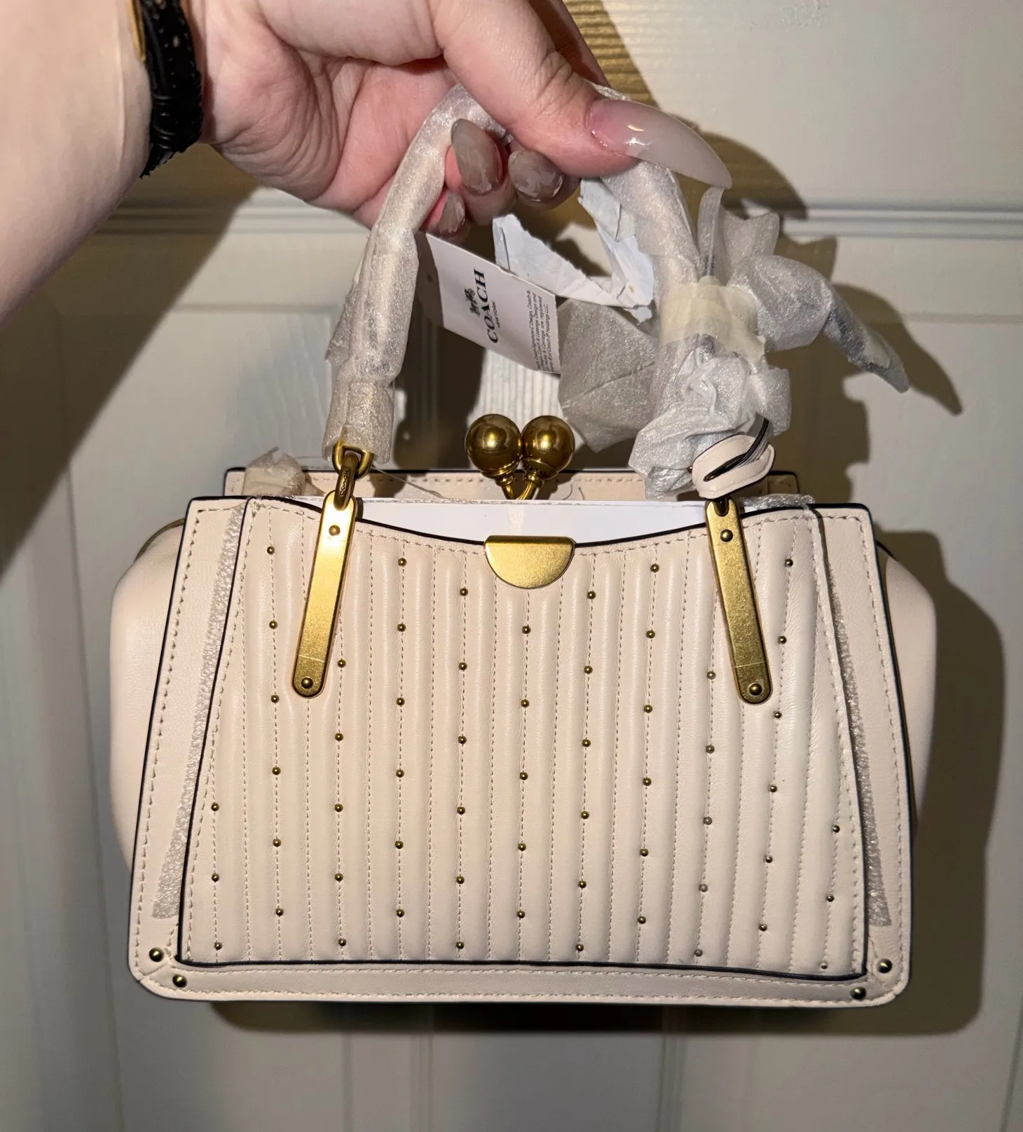 RARE Coach Kisslock Dreamer 21 with quilting and rivets. Ivory and gold KissLock never used Its appr... Show more
