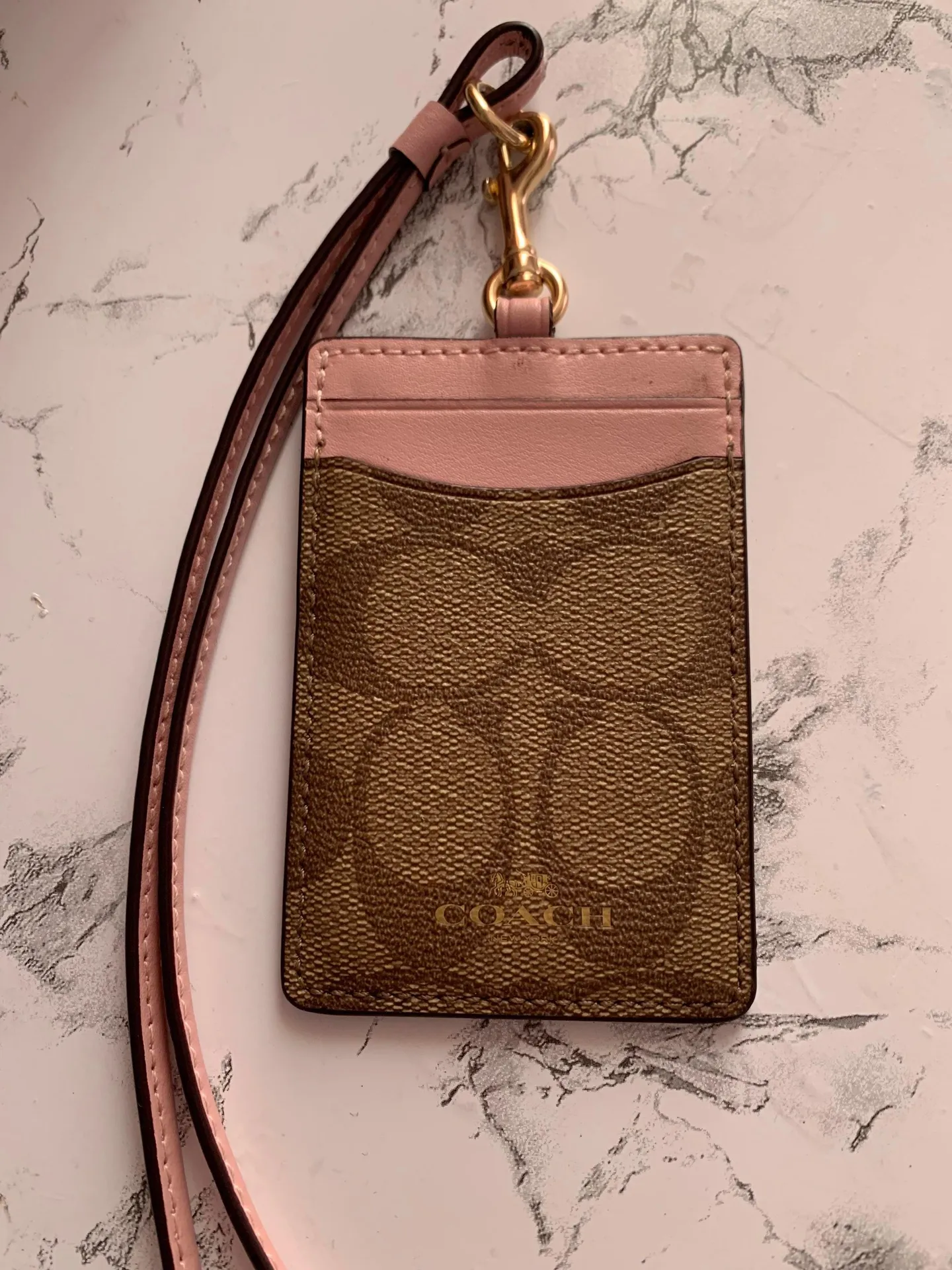 Cute brown and pink coach lanyard. Fairly used. Only flaw is the clear side is a little stretched fr... Show more