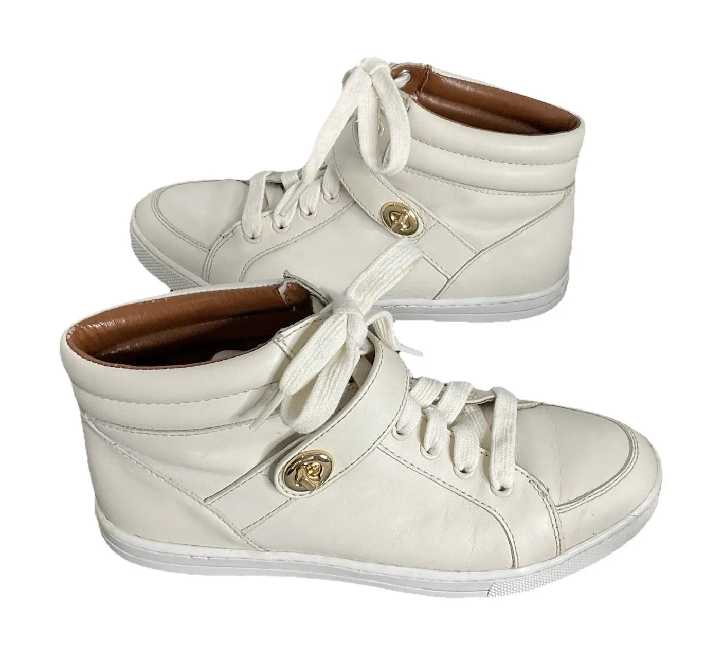 Elevate your sneaker game with these high-top Coach Pembroke sneakers. The chalk leather upper mater... Show more