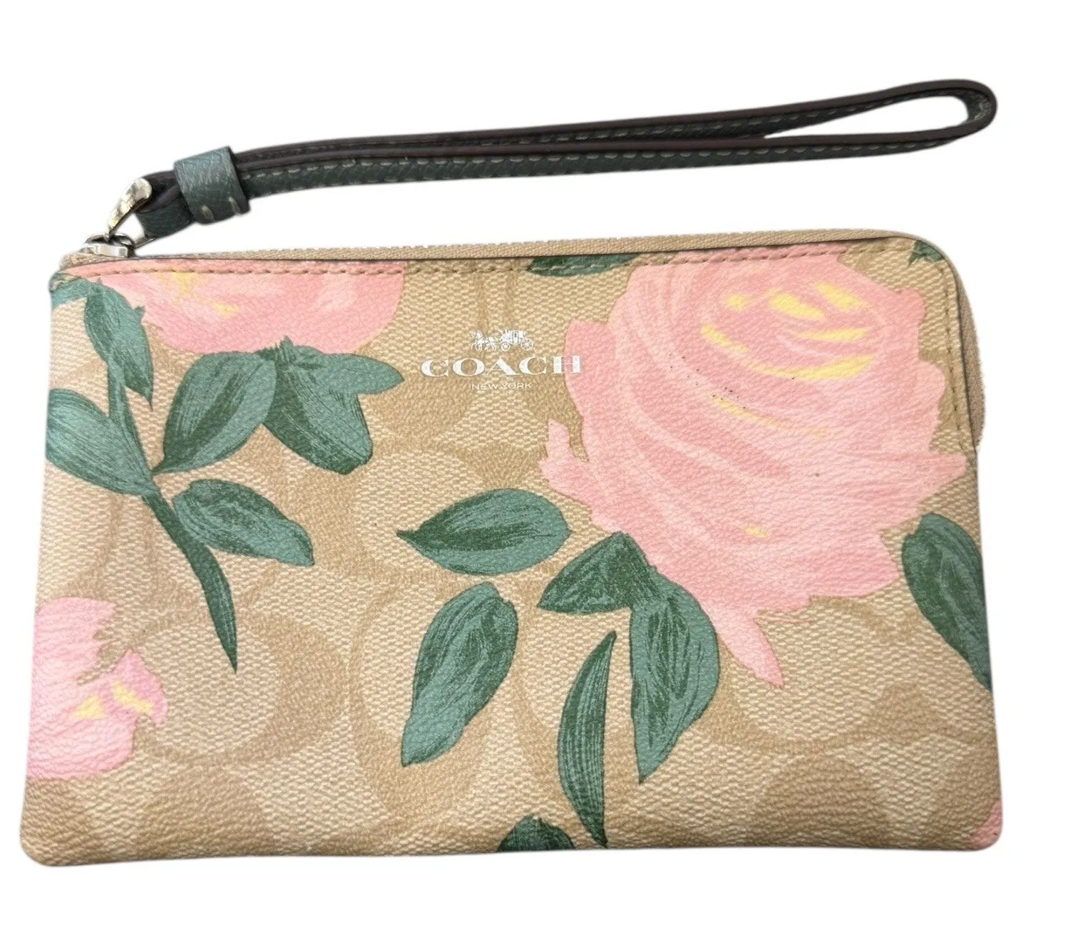 * Used * Coach wristlet * F26291 * Pink roses * Classic CC signature background * Co... Show more