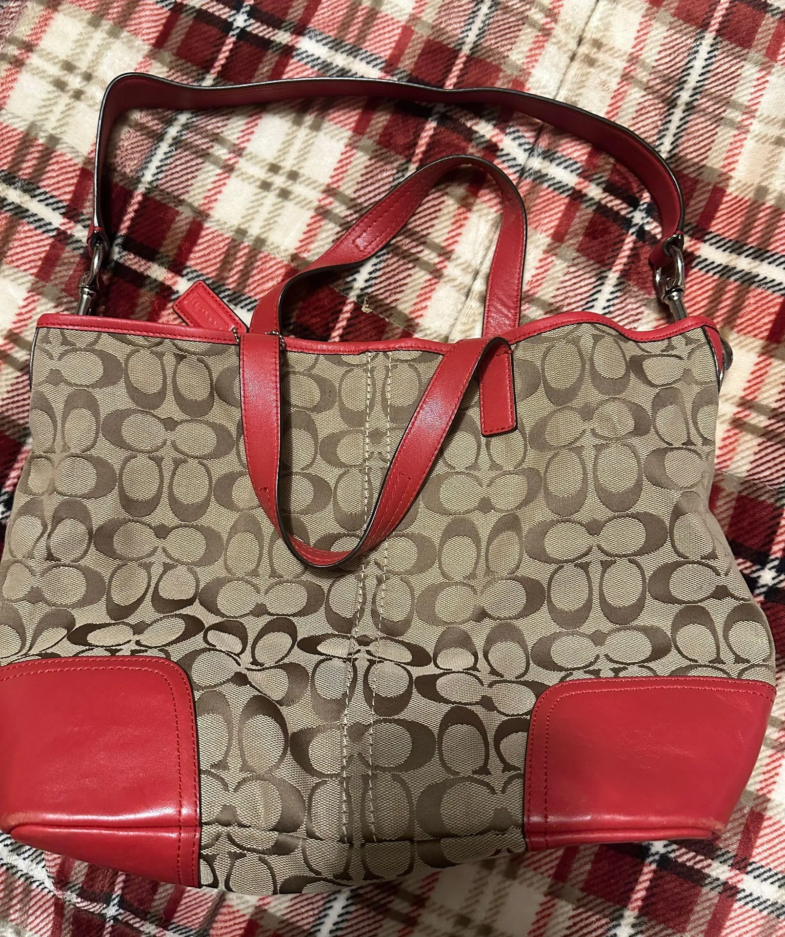 Used but great condition Coach purse. No flaws that I can see. I am downsizing my Coach hoard.