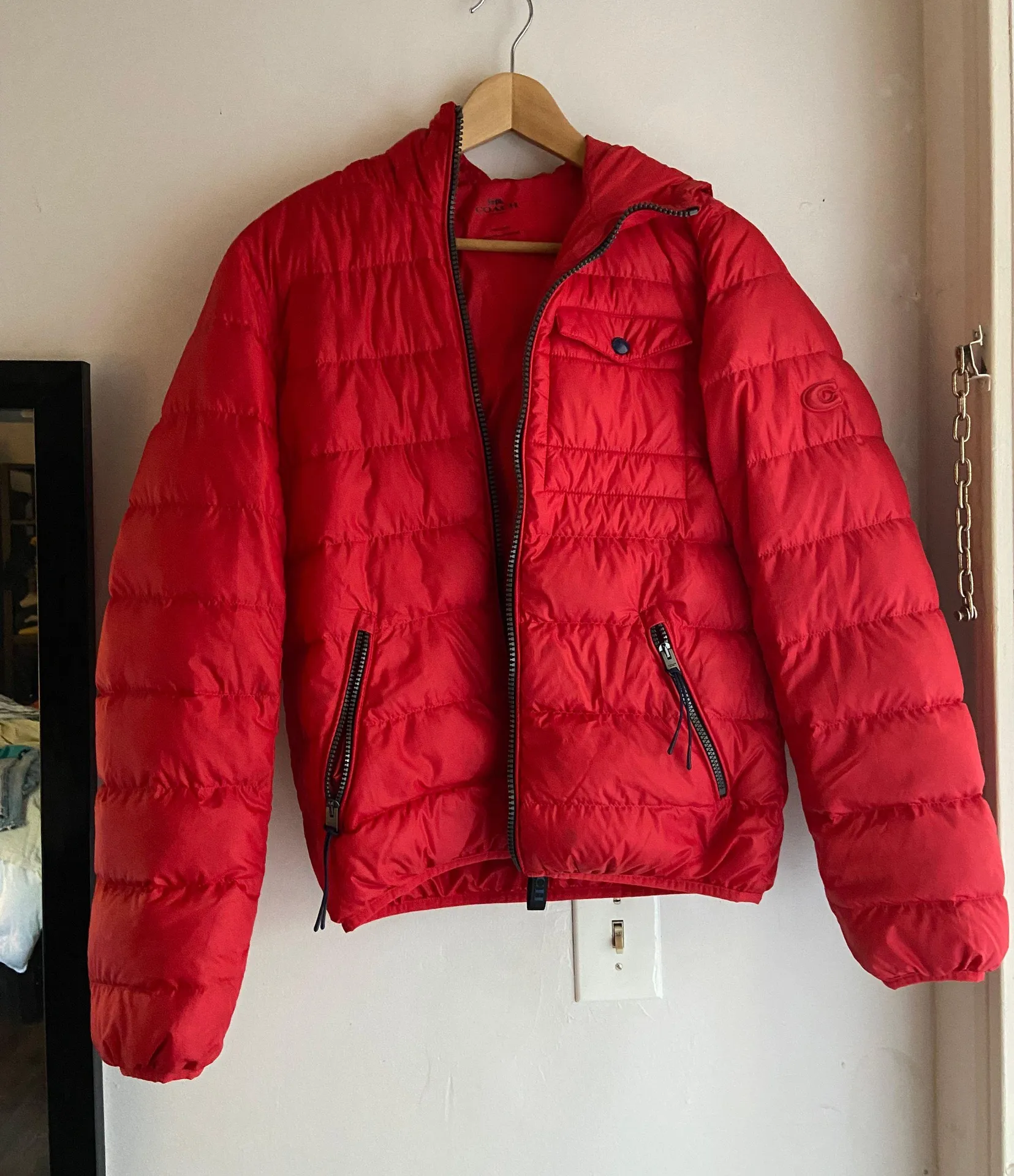 Coach red puffer coat 🌸 Women’s size xs / s red puffer coat, coach line 2019 , small hole under r... Show more