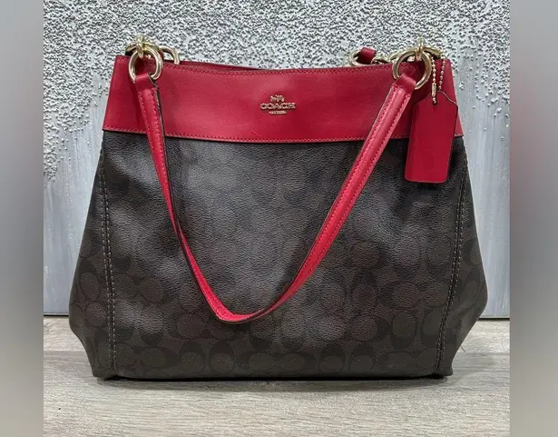 Coach Red Signature Lexi Brown Shoulder Bag Purse Leather Valentine Signature Coach brown jacquard p... Show more