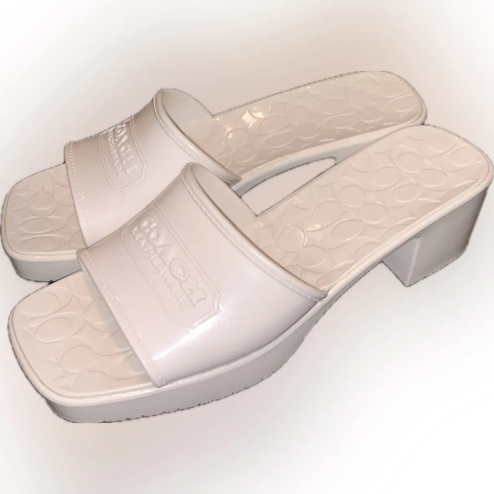 Experience the perfect blend of style and comfort with these Coach cream mule sandals. Featuring a s... Show more