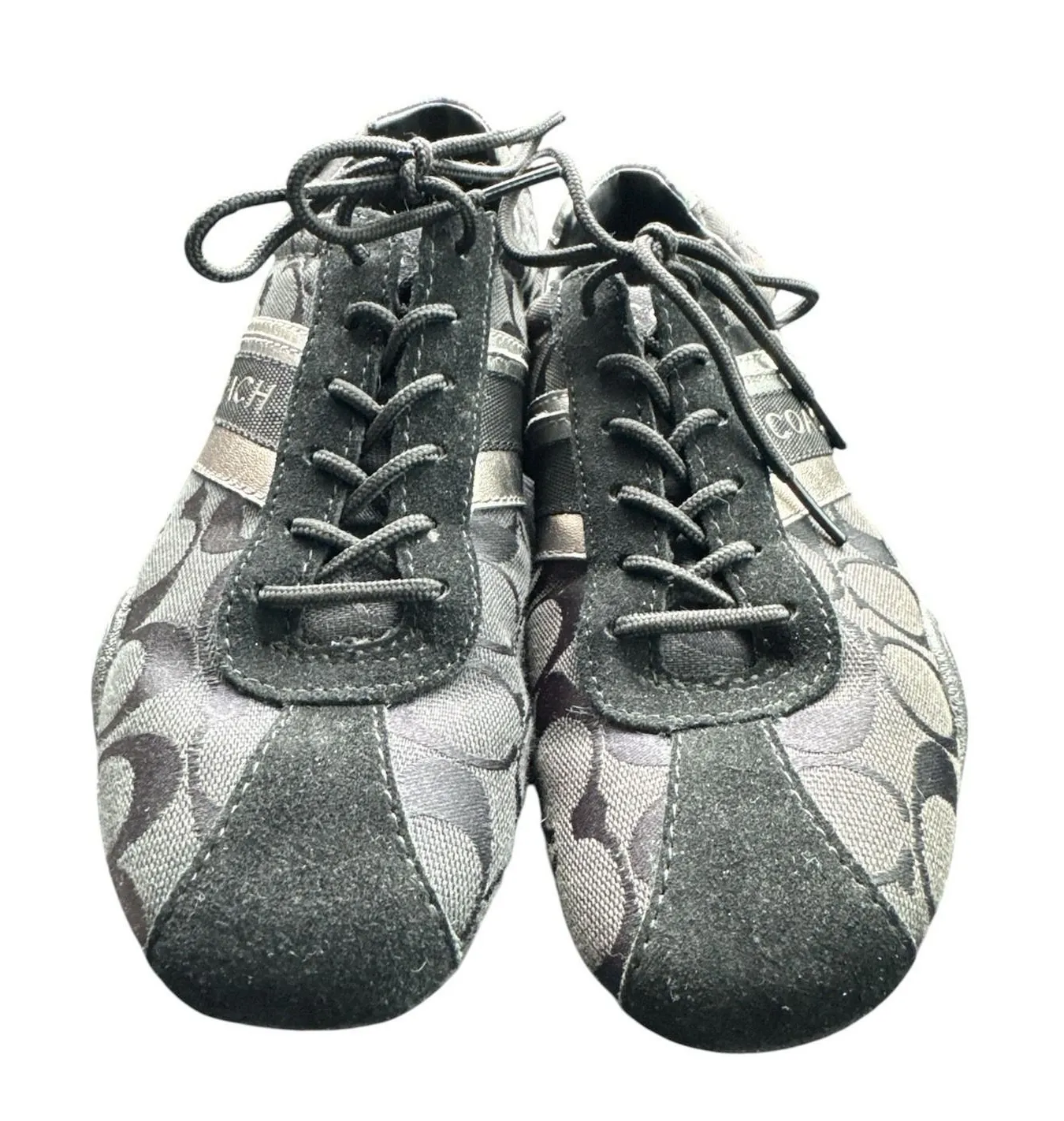 Elevate your casual style with these black suede leather sneakers from Coach. The Jayme Signature Ca... Show more